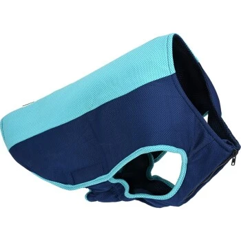Anwendung: Kühlweste in Wasser tauchen, gut auswringen und dem Hund anlegen.