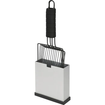 Die AniOne Streuschaufel mit praktischer Halterung dient zur einfachen Reinigung der Katzentoilette.