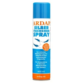 Vor Gebrauch Flasche schütteln. Von Silberfischchen bevorzugte Plätze oder die Ungeziefer selbst werden mit ARDAP Silberfischchen Zerstäuber aus etwa 20 cm Abstand besprüht, bis