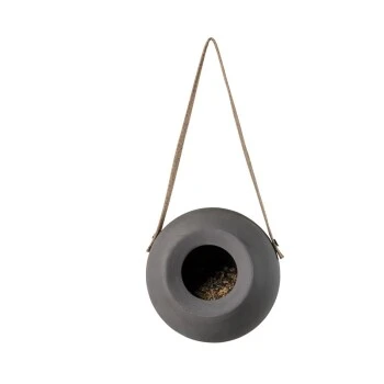 Der Futterspender ist aus Keramik gefertigt und kann dank des mitgelieferten Bandes ganz einfach an jeder beliebigen Stelle aufgehangen werden.