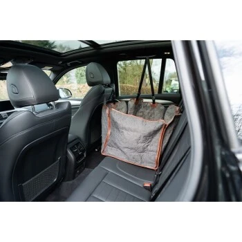 Die Autoschondecke wurde so konzipiert, dass sie speziell einen Sitz der Rückbank vor Schmutz, Nässe und Kratzern schützt. So können weitere Mitfahrer ebenfalls bequem auf der Rückbank Platz nehmen. Die wasserabweisende Schondecke ist zusätzlich mit Seitenwänden ausgestattet, sodass sie einen rundum Schutz bietet. Die gepolsterte Liegefläche sorgt für extra Komfort, auch auf längeren Reisen. Durch die Anti-Rutsch Unterseite hat die Decke einen sehr guten Halt und kann zusätzlich im Spalt zwischen den Sitzen befestigt werden. Am Rückenteil befinden sich Öffnungen, durch die eine Sicherheitsleine vom Anschnaller zum Hund geführt werden kann, damit er während der Auofahrt gesichert ist. Die Decke kann auf beiden Seiten der Rückbank platziert werden und mit wenigen Handgriffen an den Kopfstützen der Vorder- und Rücksitze befestigt werden. Für einen leichten Einstieg lässt sich die Autoschondecke mit Reißverschlüssen zu beiden Seiten öffnen.