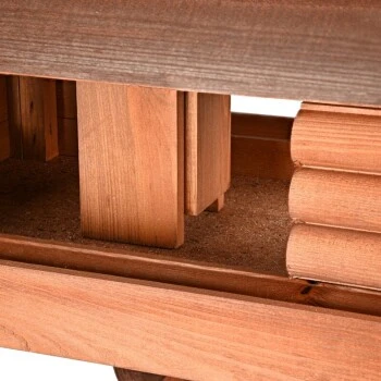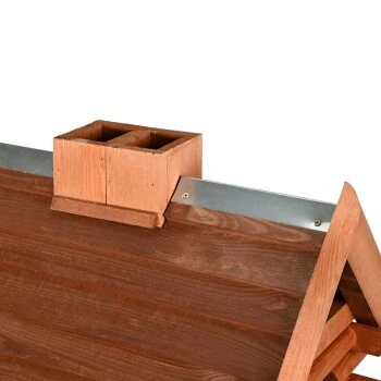 Durch das abnehmbare Dach können Sie bequem die Futtersilos befüllen und einfach reinigen. Die Löcher in der Bodenplatte sorgen dafür, dass Regenwasser einfach ablaufen kann und sich die Nässe nicht im Vogelhaus sammelt.