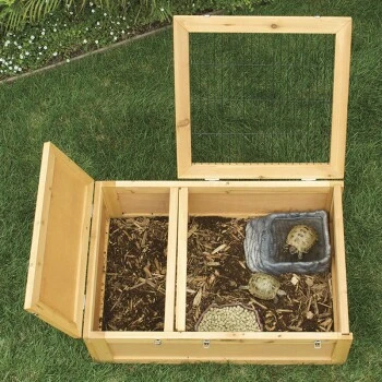 Ein Häuschen in edlem Holzdesign für Landschildkröten, bevorzugt von professionellen Schildkröten Züchtern.